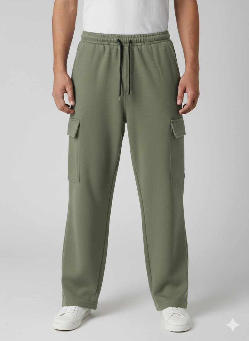 Cotton Fleece Military Green Loose Bottom Cargo Trouser